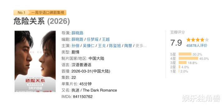 今年截止目前,能一口气追完的长剧不算多,《危险关系》算一部。剧集也确实释放了一定的后劲儿:豆瓣上,该剧从加更礼收官的1.2万人开分7.7分,到如今一周过去已经出现了“双增长”,打分人数4.3万、评分7.9分。